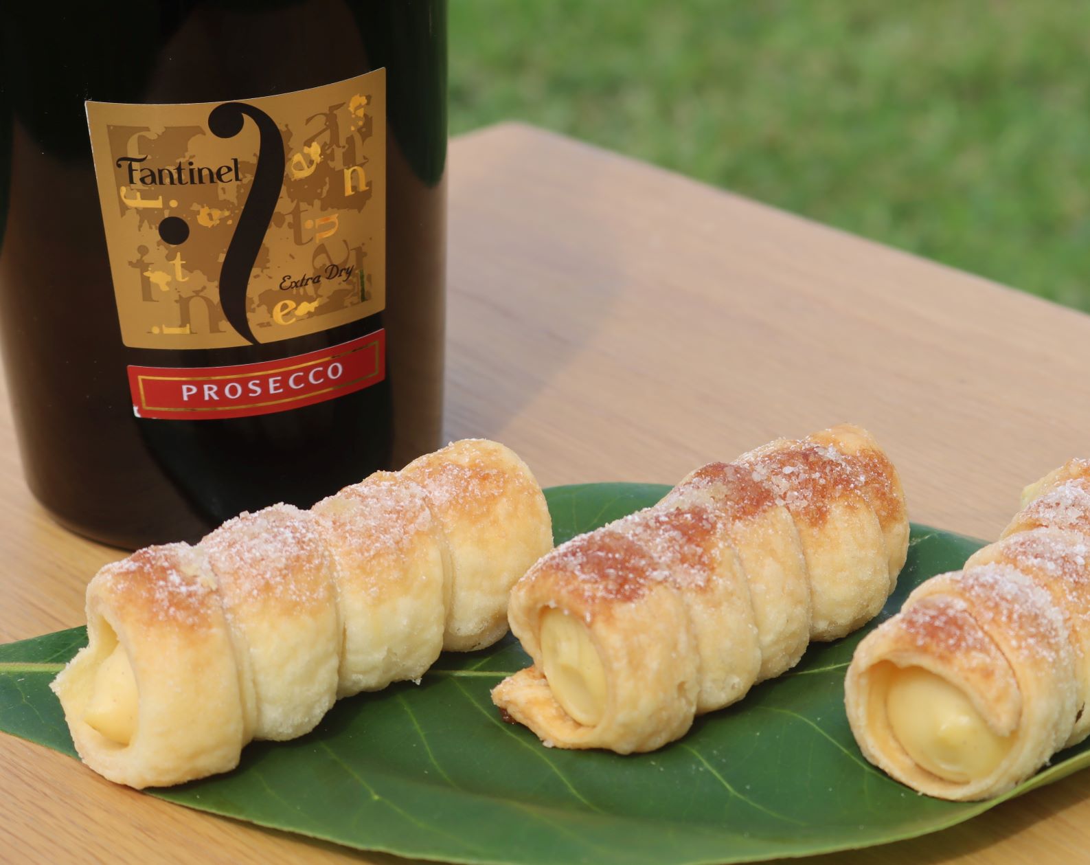 En forme de petit canon, cette pâtisserie est l’incontournable dessert du dimanche milanais. Il est tout simple : une pâte feuilletée parfumée, remplie d’une généreuse crème anglaise aromatisée à la vanille. Un muscat pour l’accompagner ? Attention les calories ! La pâte feuilletée de ce dessert est saupoudrée de sucre et la crème pâtissière est riche et consistante. Pour l’équilibre, Mervin préfère donc miser sur un vin mousseux plus sec. Le Fantinel Prosecco Extra Dry, élaboré et raffiné, mitigera par la même occasion tout sentiment de culpabilité…