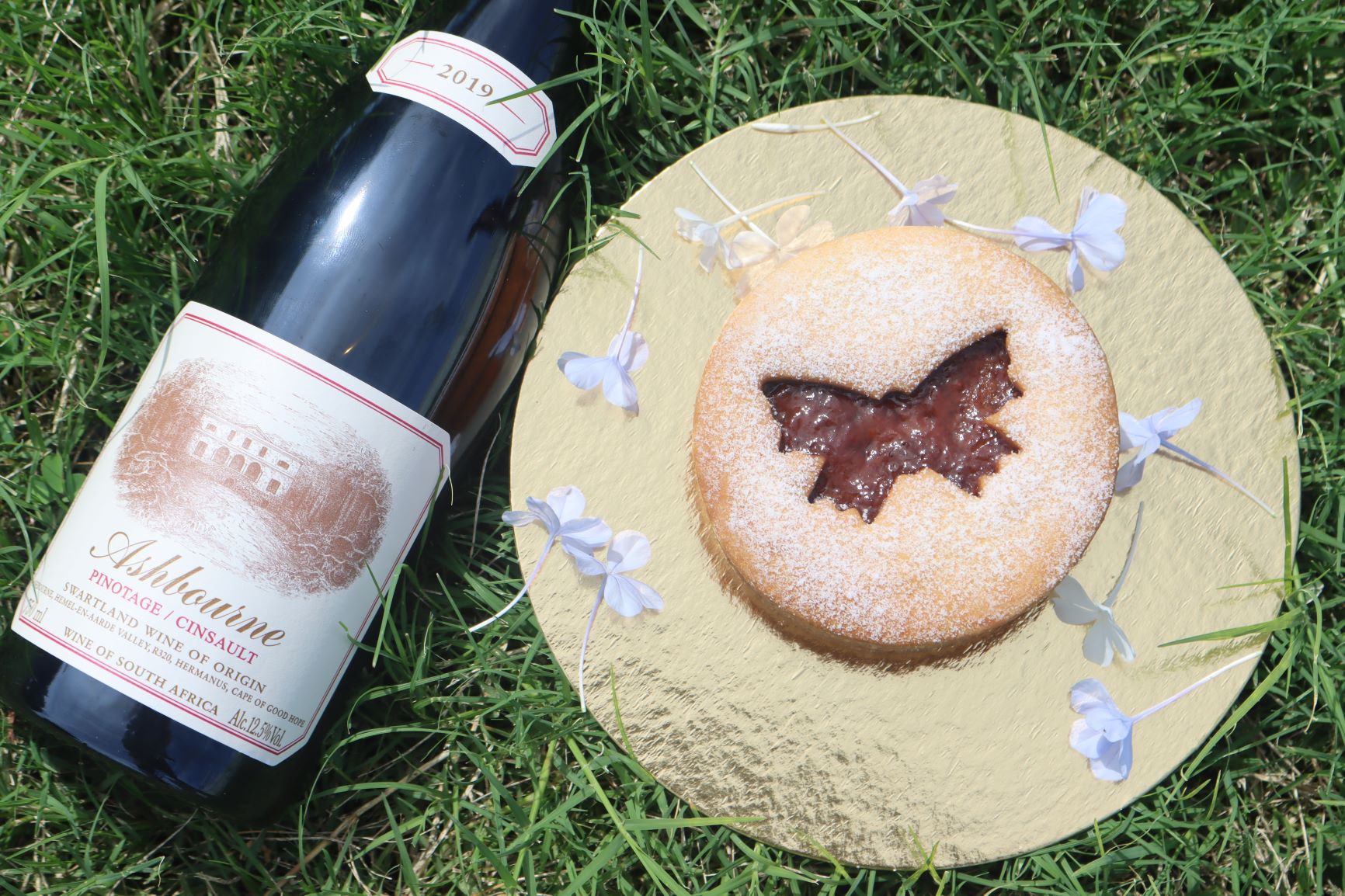 Mervin a choisi « un grand gaillard », l’Ashbourne Pinotage / Cinsault. Mais il ajoute : c’est un trompe-l’œil. Derrière son caractère affirmé, cet assemblage est fin, élégant et tout ce qu’il y a de plus rafraichissant. Sa préférence va aussi à ce vin parce qu’avec les composantes de ce dessert, le chocolat en particulier, il permet de recréer en bouche le plaisir d’un Mocha Java, ce Merlot de Bellingham devenu mythique pour ses fortes notes de chocolat. Un vin soyeux qui fera glisser la tarte papillon de Frederica « comme une Porsche sur l’autoroute », plaisante Mervin.